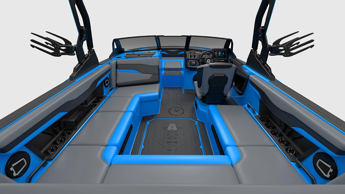 Die neue Axis T250 (2026) ist das grösste und leistungsstärkste Axis aller Zeiten. Mit 25 Fuss Länge, Platz für bis zu 18 Personen und ihrem markanten Design bietet sie maximale Performance und höchsten Komfort. Im Innenraum sorgen ein durchdachtes Layout und grosszügiger Stauraum für optimale Raumaufteilung, während der neue Tower mit seinem frischen Look und moderner Linienführung überzeugt. Surf Gate® und Power Wedge® III erzeugen saubere, individuell anpassbare Wakes und Wellen für jedes Fahrniveau.
