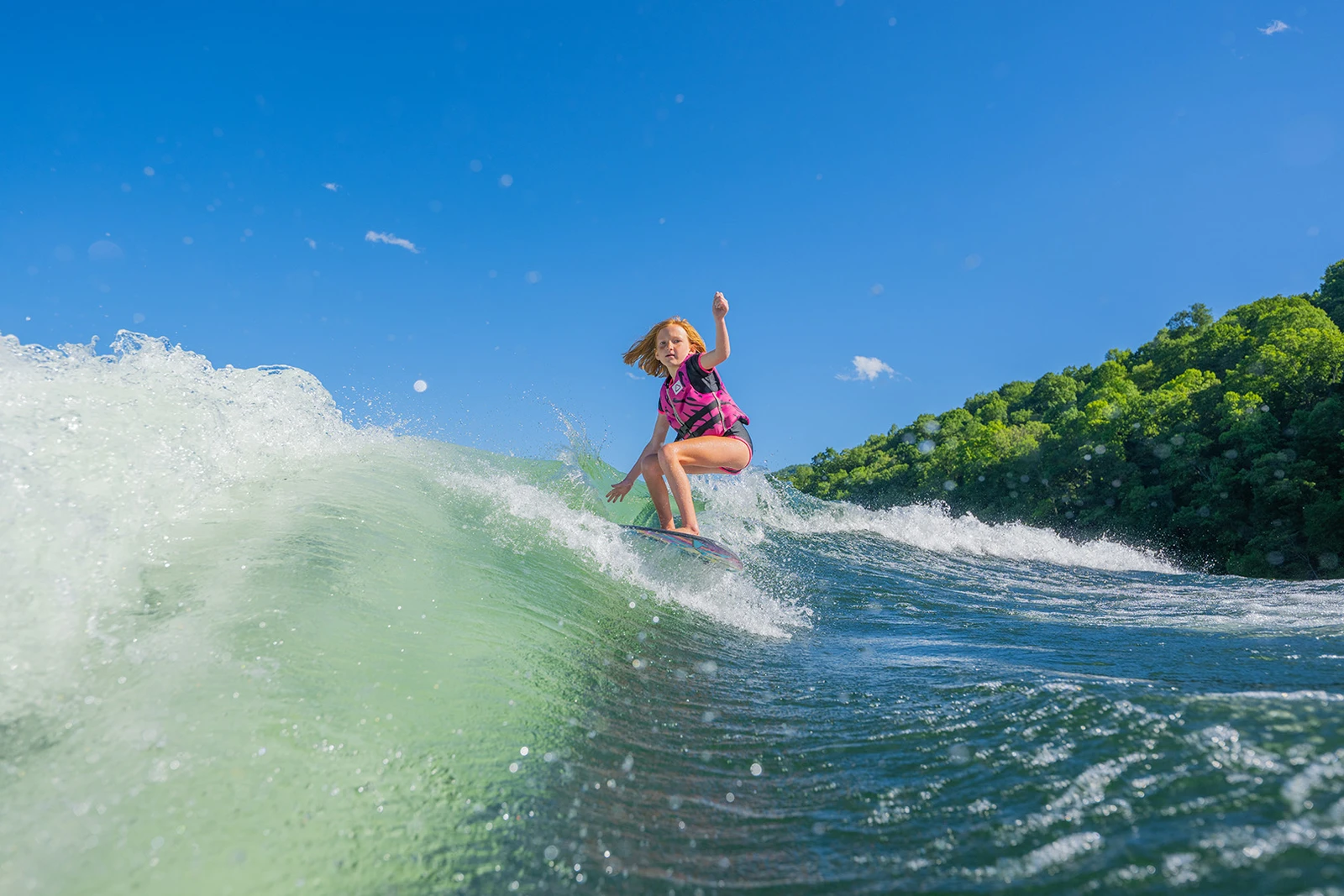 Erzeuge auf Knopfdruck für jeden Fahrer und jederzeit eine perfekt geformte Surf-Welle. Die Hochgeschwindigkeits-Hydraulikzylinder von Surf Gate ermöglichen es, die Welle blitzschnell von einer Seite zur anderen zu wechseln – egal ob Regular oder Goofy.