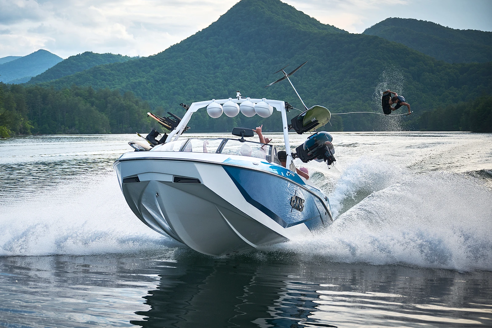 Die Axis T220 bietet die perfekte Kombination aus Grösse, Raum und Performance – ganz ohne Kompromisse. Mit ihren 22 Fuss ist sie leicht zu trailern und zu manövrieren, liefert dabei jedoch das volle Wakesports-Erlebnis. Bis zu 15 Personen finden bequem Platz, während durchdachter Stauraum alles stets griffbereit hält. Dank Surf Gate® und Wake Plus™ Hull entstehen anpassbare Wakes und Wellen für jedes Fahrniveau. In Kombination mit dem markanten Axis-Design, modernster Technik und der kraftvollen Malibu Monsoon™ Power sorgt die T220 für maximalen Spass und herausragende Leistung.
